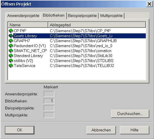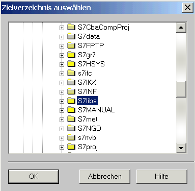 Zielverzeichnis innerhalb der Step7 Verzeichnisstruktur auswählen. Sie sollte nicht den üblichen Projektordner "S7proj" sondern den Bibliotheksordner S7libs für Library´s anwählen. Somit steht die Bibliothek beim öffnen nicht unter Ihren Projekten, sondern unter der Karteikarte der Bibliotheken.